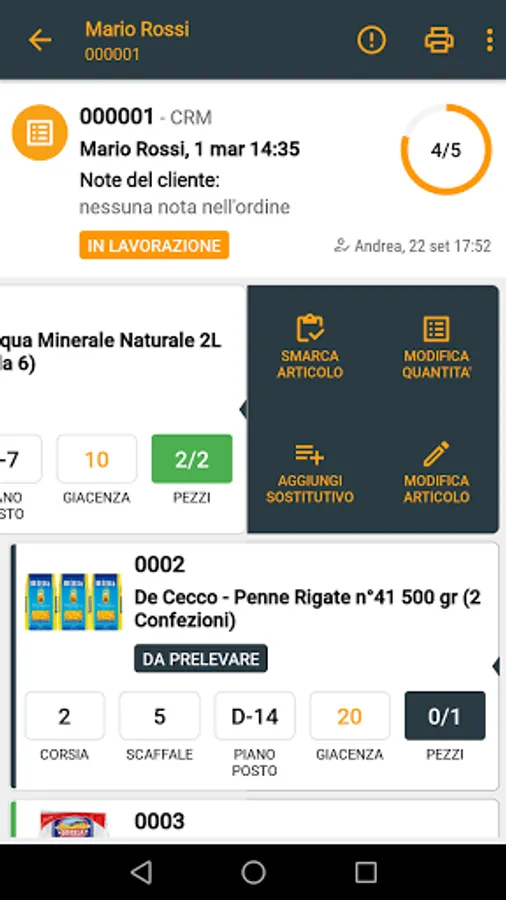 - Picking items: quick unmarking of products with bluetooth barcode readers