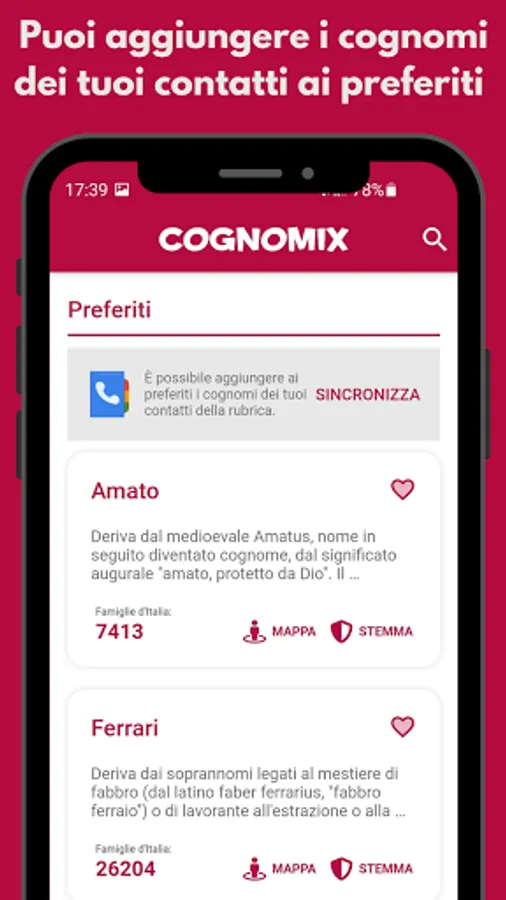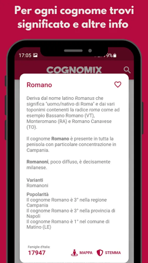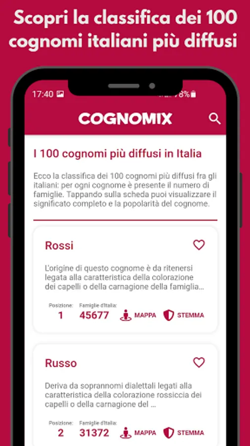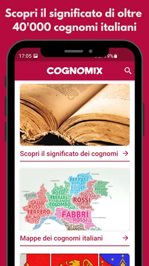 COGNOMIX is the most complete and information-rich app on Italian surnames: discover the meaning, distribution and family crests of thousands of Italian surnames!