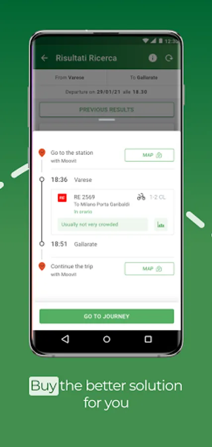 Search your next trip with the “Where are you going” button or the purchase button in the menu.