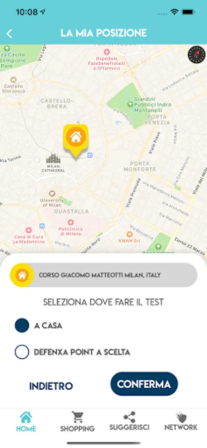 Select the BOOK NOW function key located at the top of the home page, enter your complete address with the house number or allow the app to find it by activating the geolocation, choose whether you prefer to carry out the diagnostic exam at home or at the health facility closest to your home, select the date and time of the exam from those made available automatically by the app, enter the N ° of Test you want to carry out (in addition to you, for example other members of the family unit), make the payment in total safety by credit card.
