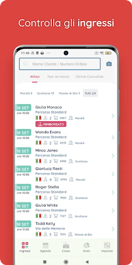 Consult upcoming visits from the practical "Entrances" function, orders are conveniently organized by time of entry.