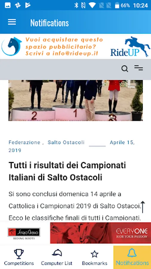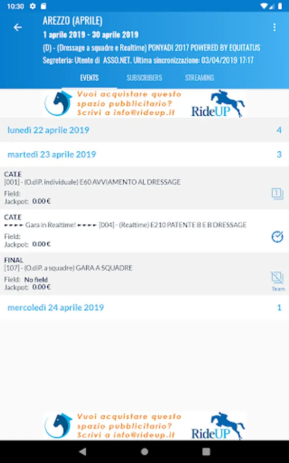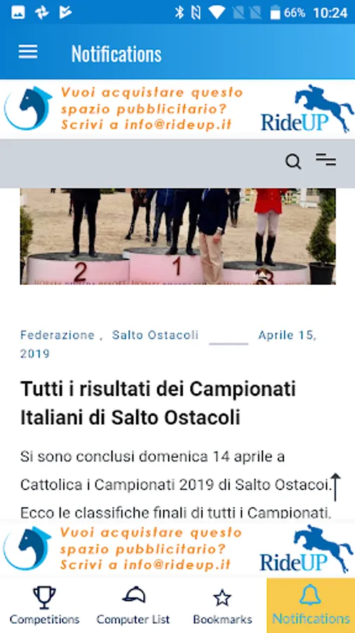 With RideUp you have the world of show jumping in your smartphone. All in real time! You can choose your favorites and follow in their races.