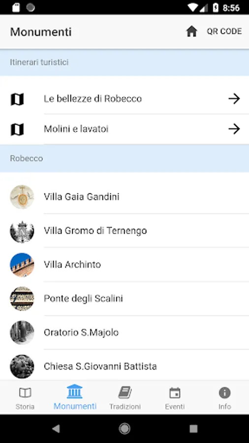 The "historical and routes Places" includes profiles of all the monuments, with photographs, location map, audio guide and possibility of using the QR Code which you will find on tourist signs and refer directly to the reference card.