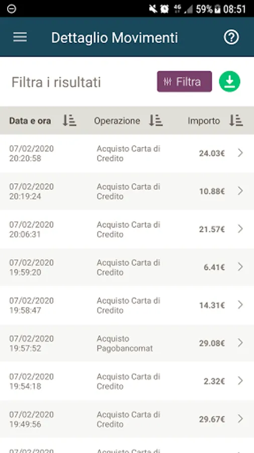 You can view the list of movements carried out by accessing the "Movements Detail" function
