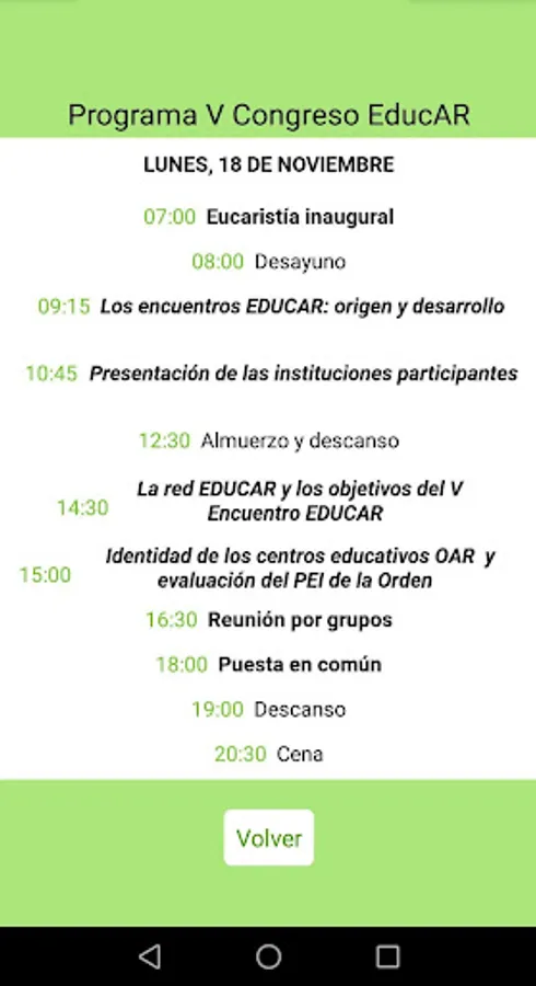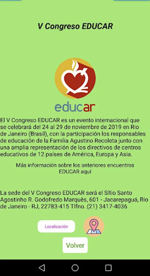 Application of the V EDUCAR Congress (Agustinos Recoletos) with relevant information about the event: location, program, resources, etc.