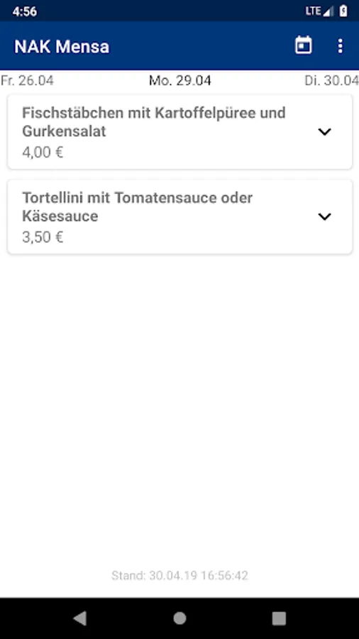 Take a look at the current and future menu of the Nordakademie-Mensa comfortably on your smartphone.