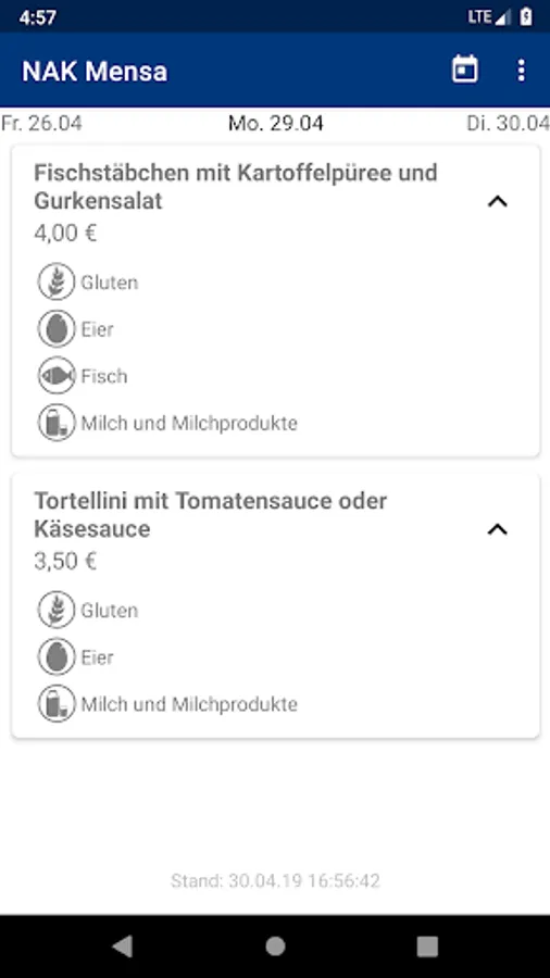 The data displayed in the NAK Mensa App comes directly from the menu of the North Cockatia website. There is no claim for correctness of the data.