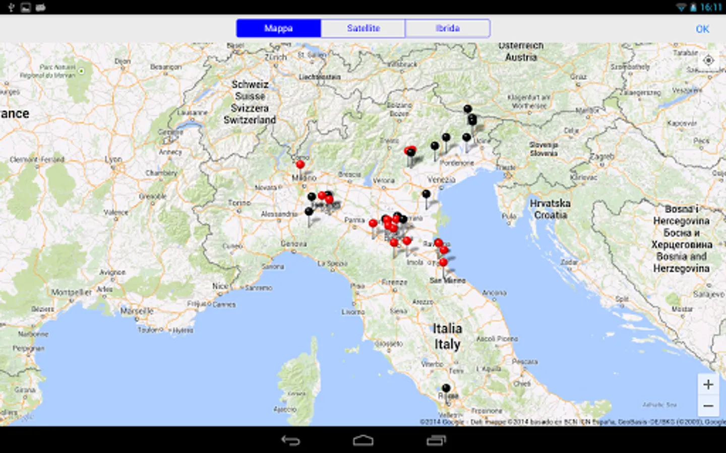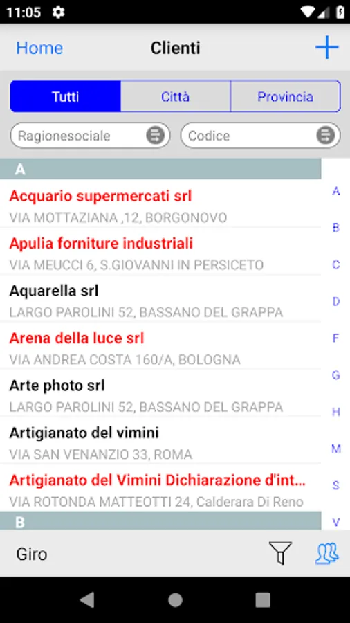• It is possible to select customers by company name, city, province, tour and view them on the geographical map;
