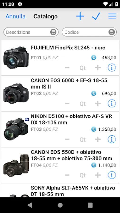 • The quantity can be entered using the numeric keypad or using the rapid increase and decrease arrows;