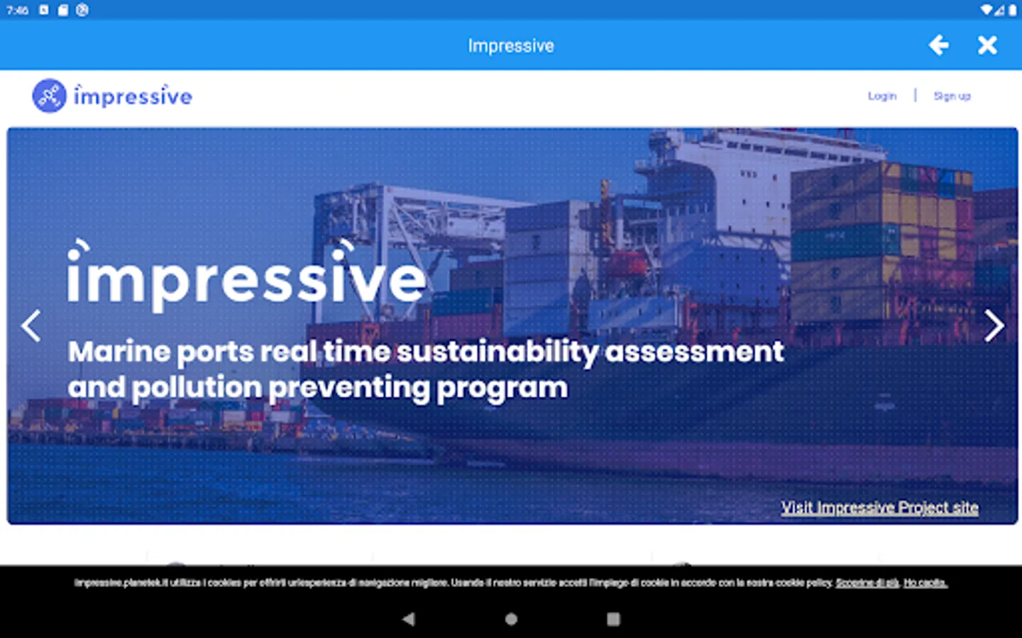 IMPRESSIVE App allows the access to and use of the operational services of oil spill and waste water and environmental monitoring in harbours and their surrounding waters.