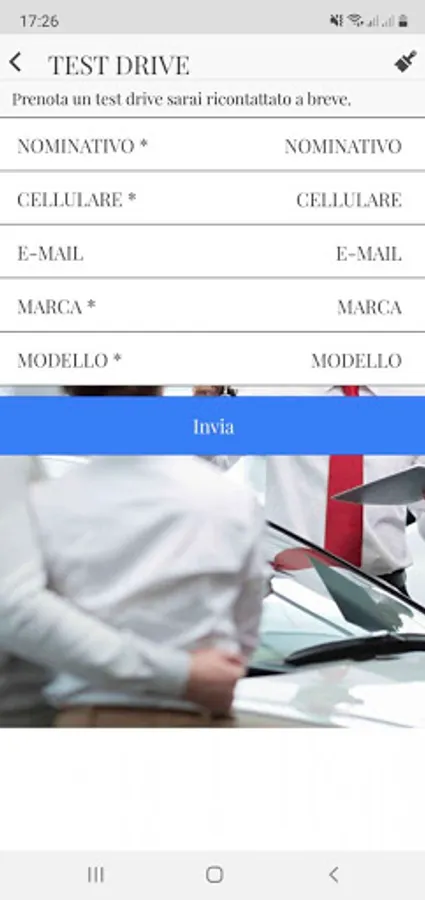Car sales activities with technical data sheets and the possibility of booking test drives