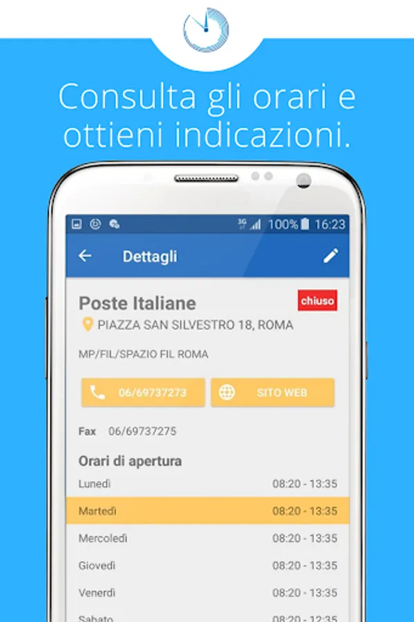 Oraridiapertura24 has more than 4 million opening hours and contact details such as phone numbers and email addresses - even the most shops and public authorities near you!