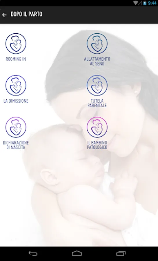 He wants to be a quick way to obtain clear and detailed information on our dedicated departments and initiatives but also a little guide to enter and move easily into the magical world of pregnancy and birth. The App is constantly changing, so always download updates to discover new functions and texts more and more complete and updated!