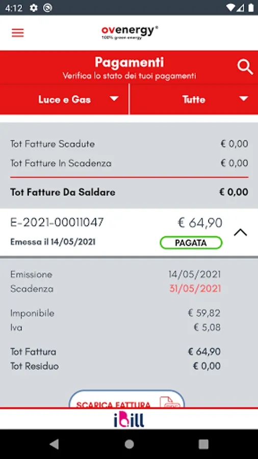 - Access the history of all bills, filter them by month, year and type (electricity and gas), view the details, download the document and pay online.