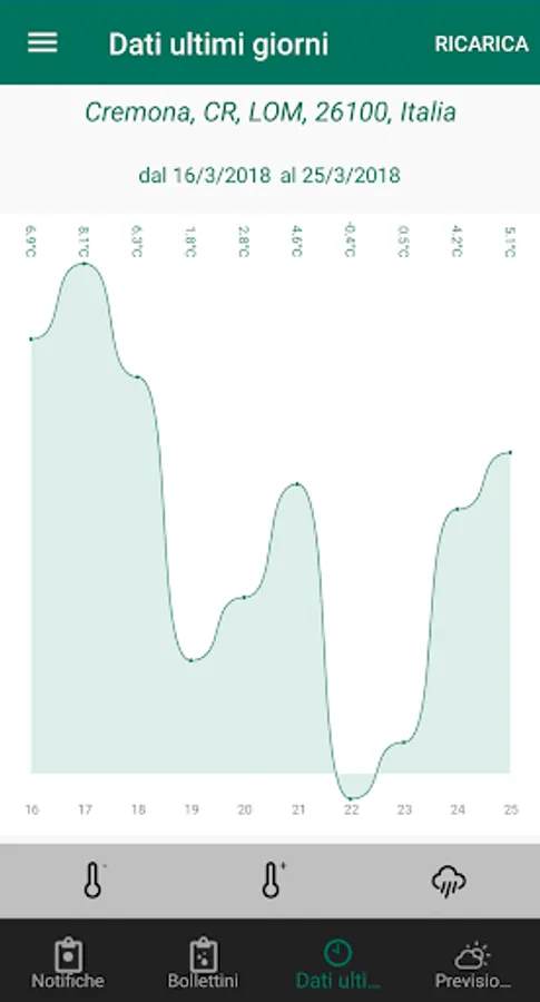 The application is intended for farmers in the region of Lombardy and provides precise information of meteorological and plant health to help them improve the management of their agricultural production; you can set up to five locations of interest, on which are provided:
