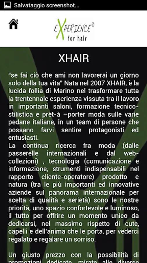 "If you do what you love you do not work a single day of your life" XHAIR Founded in 2007, is the lucid madness of Marino in transforming the entire thirty-year experience lived between work in important halls, technical-stylistic and prêt-à-porter Italian fashion on the various platforms, in a team of people that can make you feel protagonists and enthusiastic.
