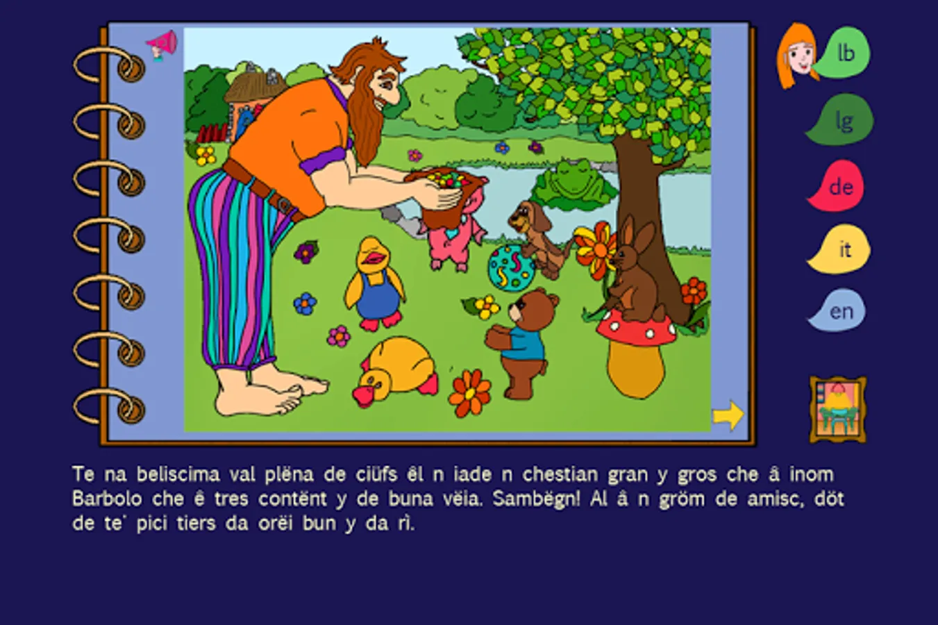 After the publication of the book with CD, the former Ladin Pedagogical Institute, now Innovation and Counselling, developed together with its partners this app, mainly thought for integrated multilingual teaching.