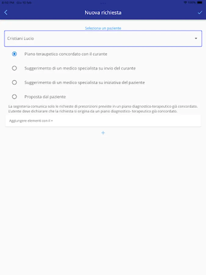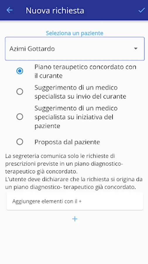 Through the fast patient you can ask the doctor for prescriptions for drugs, diagnostic tests, specialist visits, medical devices without having to call the secretary anymore.
