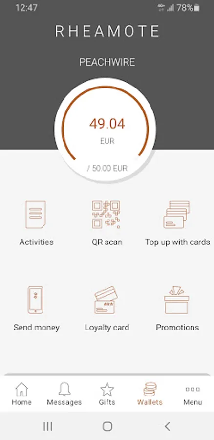 Rheamote is an electronic wallet which allows you to shop at Rheavendors vending machines through your smartphone. Download the app, sign in for the service and activate your wallet in front of an enabled machine. With Rheamote you also have access to a loyalty program to take advantage of discounts and promotions on your purchases.