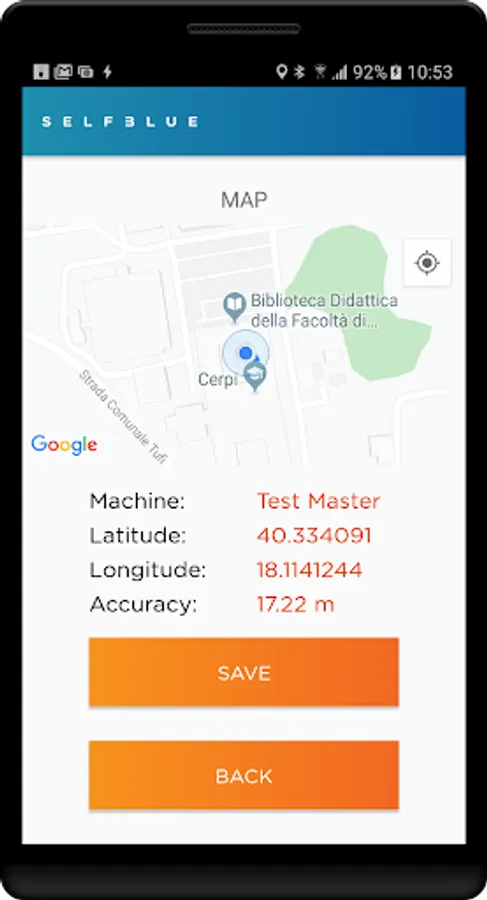 SelfblueConfig is the app needed by vending operators to configure a SELFBLUE device. To be used, the operator must be enabled on the Control Panel and have access credentials (Username and Password). Configuration can only be performed if the smartphone in use has an active network connection.