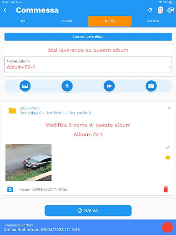 In the version for expert studies it is possible to manage appointments on assignments, take photographs, record videos, record voice memos, estimate the damage and develop the file by collecting data on the vehicle, the owner and the driver.