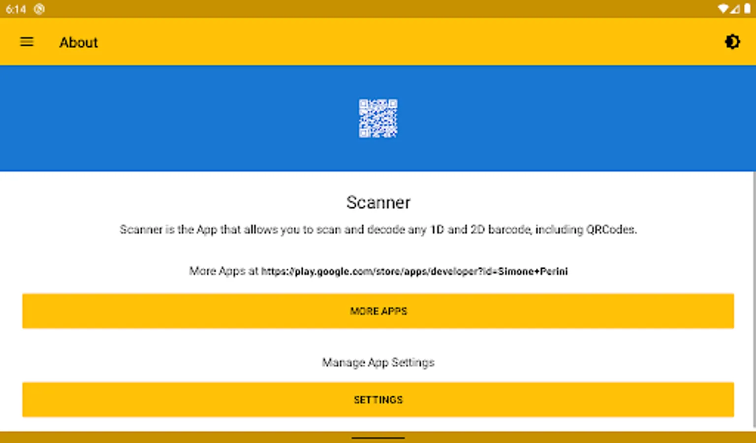 Scanner is the App that allows you to scan and decode any 1D and 2D barcode, including QRCodes.