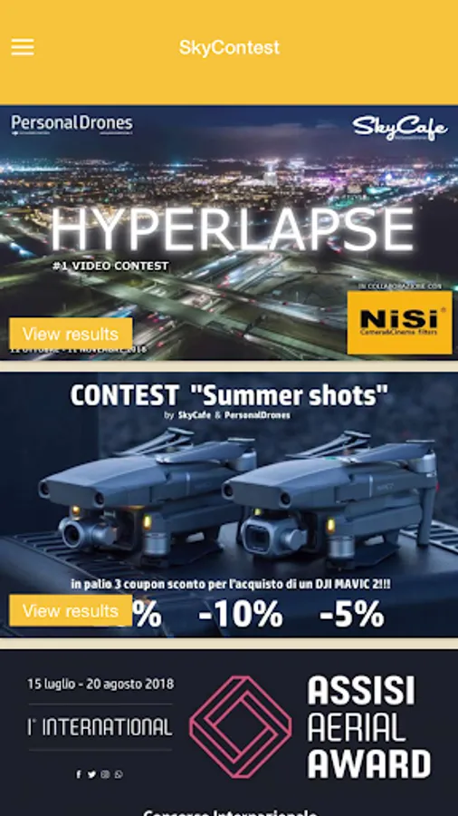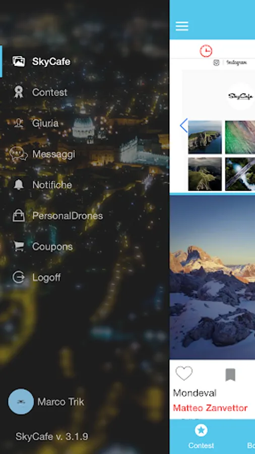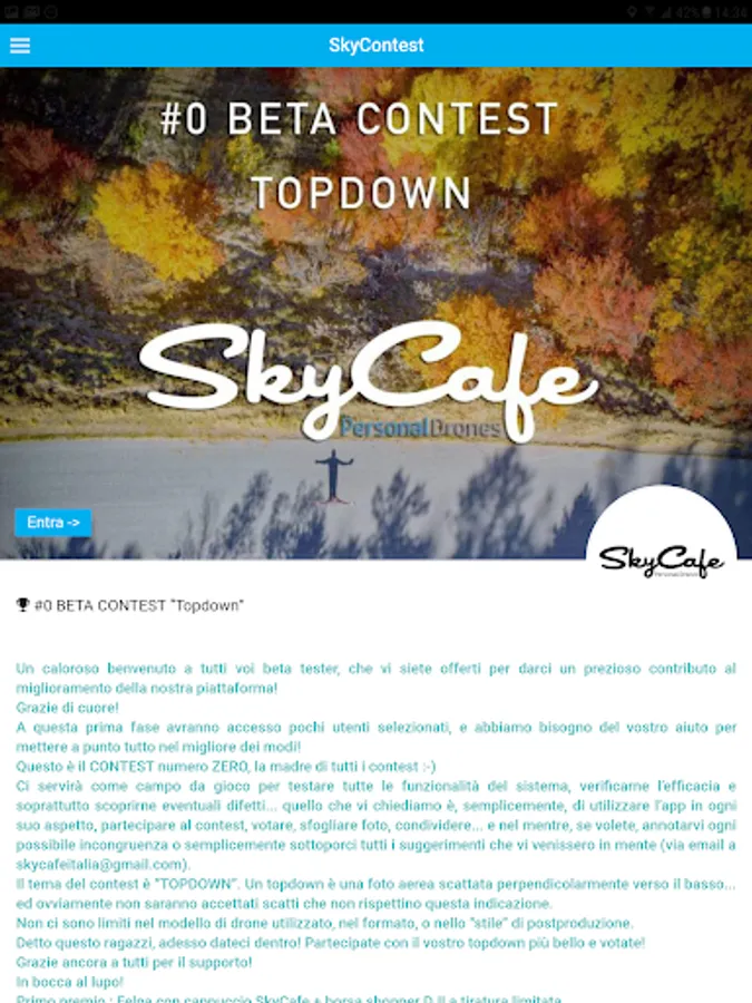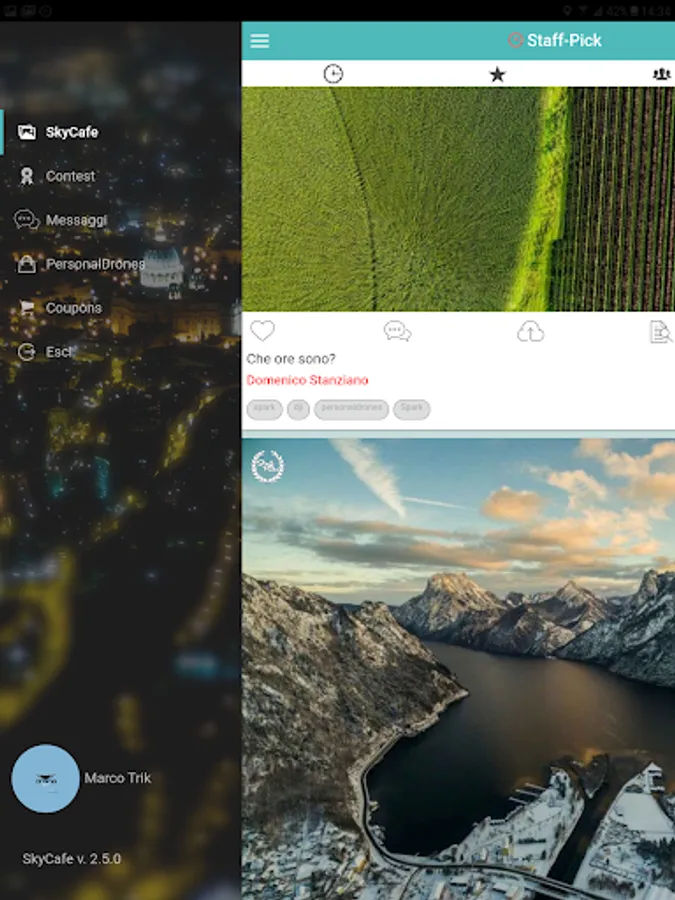 SkyCafe is the first Italian app dedicated to the aerial photograph, a virtual living room where registered users can upload their best pictures, participate in photo contest and win exclusive prizes.