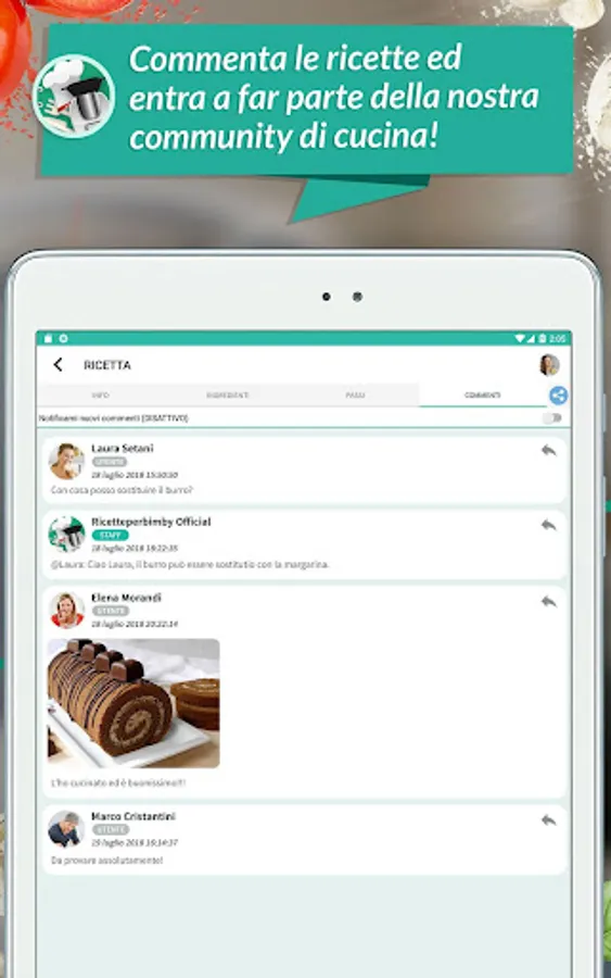 For each recipe you can interact with community users by commenting and sharing experiences via Facebook or Google accounts.