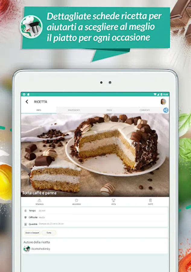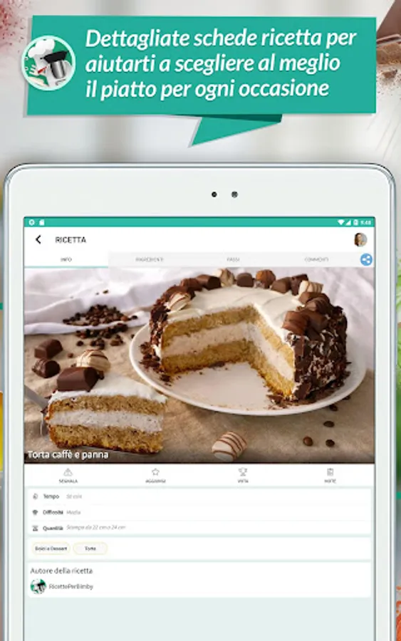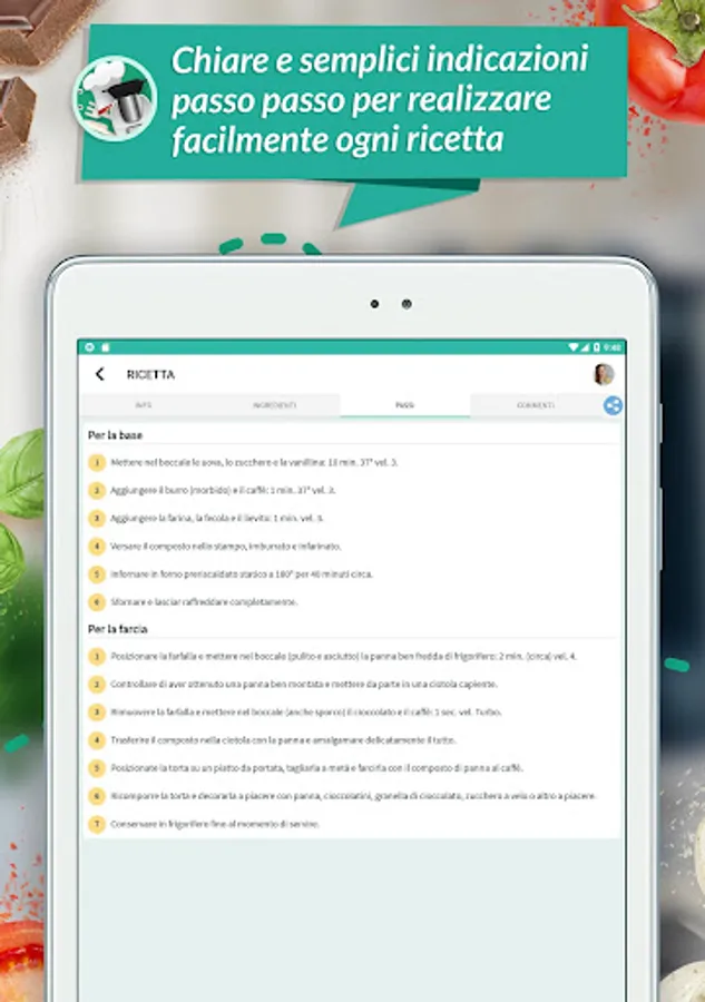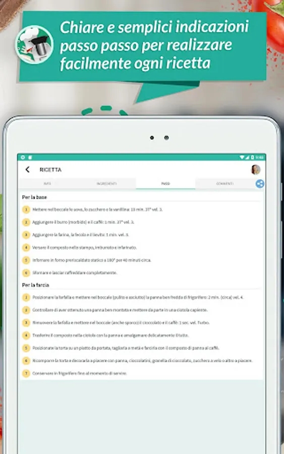 Each recipe consists of a practical form consisting of: photos, ingredients, preparation time, quantity, difficulty and step by step guide to the actions to be carried out with the Thermomix.