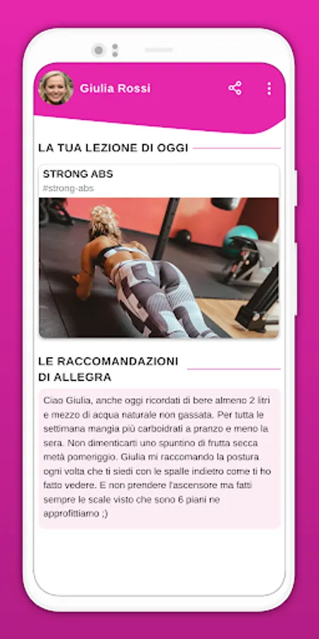 Every Monday, Wednesday and Friday Allegra will send you an unmissable workout lasting about 20 minutes on the App that you will have to do together with her.