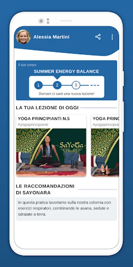 Sayonara will send you on the app sessions to do with her lasting about 20 minutes: 1 session every 3 days.