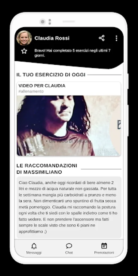 I will make specific videos for you with exercises that I will ask you to perform on the same day you find them on the app: you will interrupt the sedentary lifestyle, we will optimize the work done together and we will continue to deal with any of your physical problems that require constant positive stimulation.