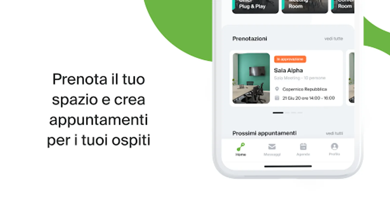 The bookable spaces are designed to meet the needs of those who want to organize and share their work activity with their contacts.