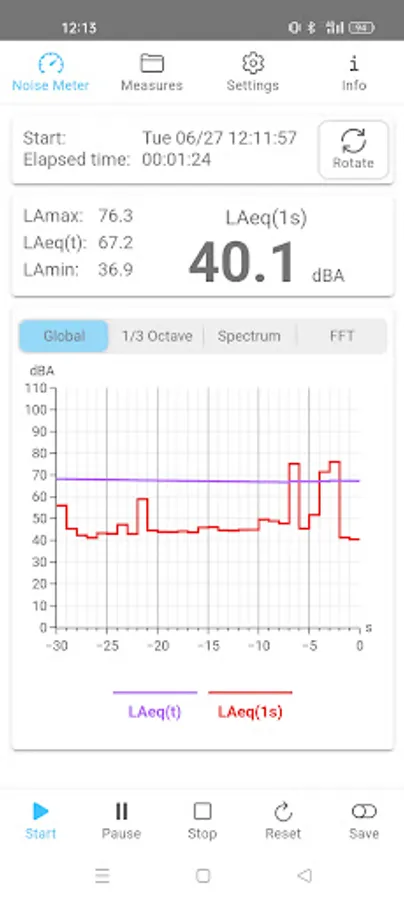 - Real-time A-weighted sound pressure level measurement