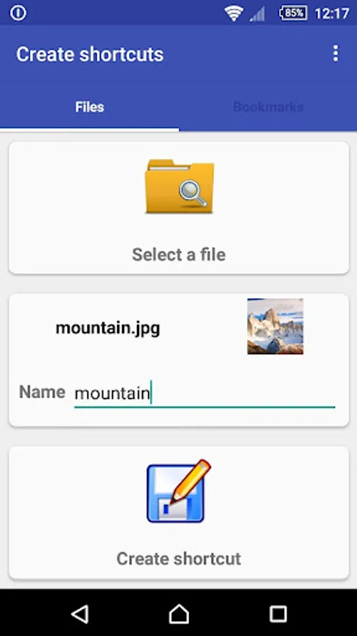 This app allows you to create a shortcut to any file on your device home screen (external storage only). In simple and intuitive way, you can decide which files to appear on one of your screens and open it with a simple click. Stylish, colorful icons will mark your files according to their extension (zip, rar, pdf, mp3, avi, jpg, txt, doc, xls, ppt, ...).