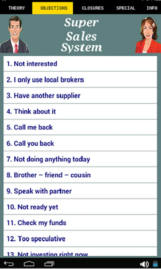 The "Super Sales System" is designed to take the salesperson from the introduction to the close quickly by addressing the major concerns of prospective clients.
