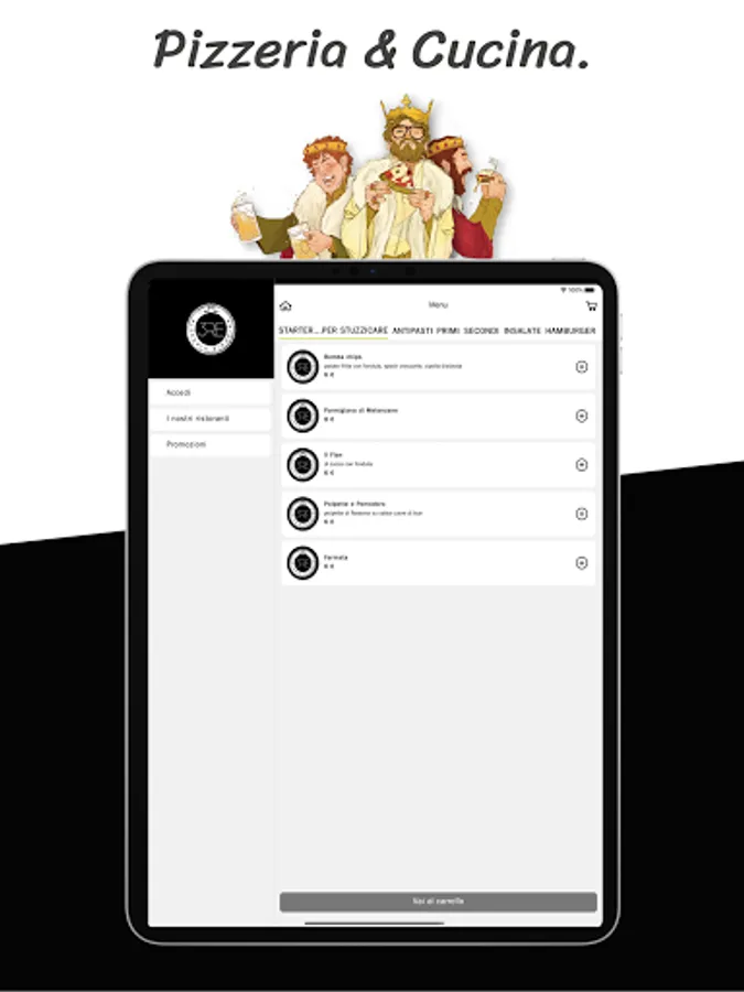 Long leavening pizzas cooked in a wood oven and prepared with quality ingredients.