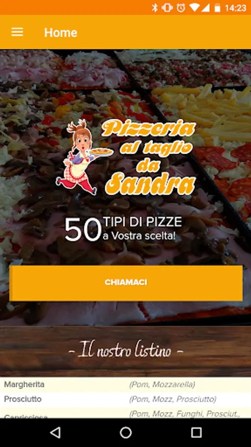 With the official app of Pizzeria Sandra Villadose (Rovigo) you can consult our list with more than 50 flavors of pizzas.