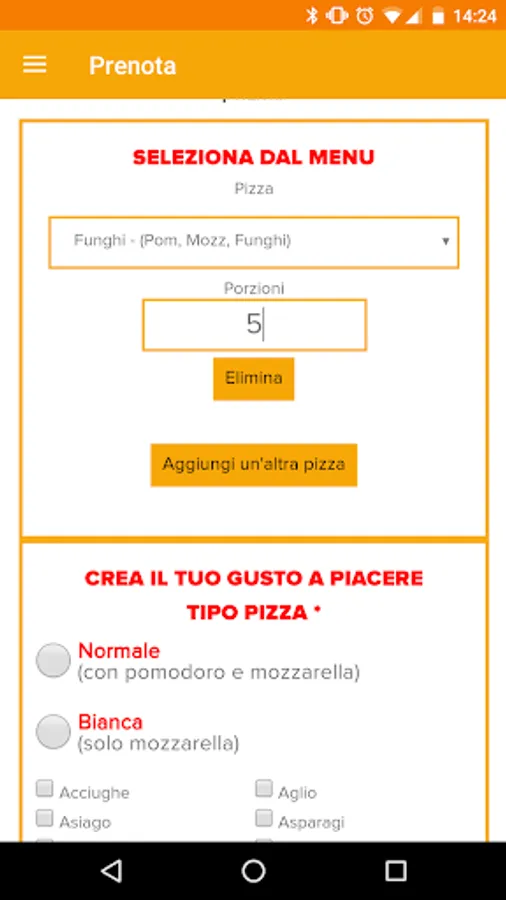 You can also book your favorite pizza flavors and selecting portions from the list or compose your own taste!