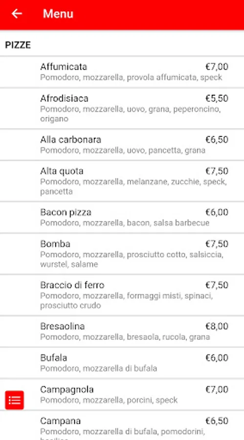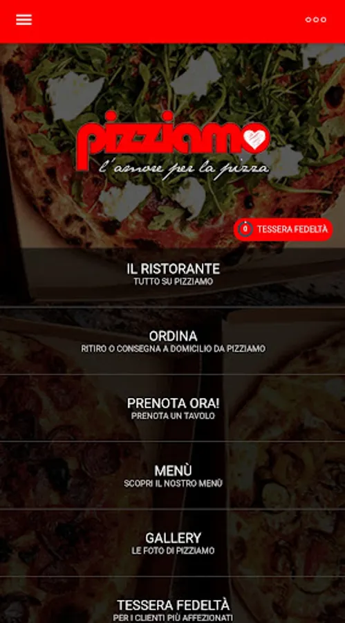 Hunger? Order online quickly and easily! With the Pizziamo app you can choose your favorite dishes from the menu and send the order in a few seconds. Enjoy your meal!
