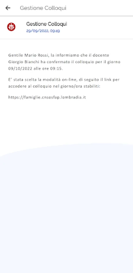 It can only be used by those who own the Electronic Register of the CNOS-FAP Lombardia, it allows the consultation of votes, absences, topics covered and the justification of absences. It also manages family / trainers interviews and center / family communications with graphics designed to make everything simple, intuitive and fast. An easy and safe tool that helps the family to always be connected.