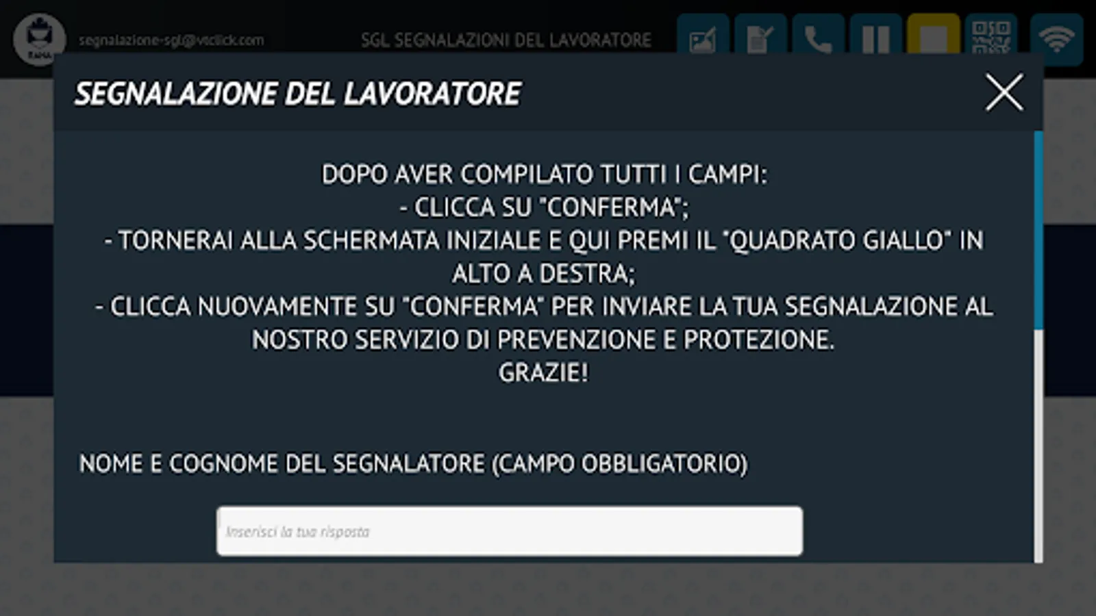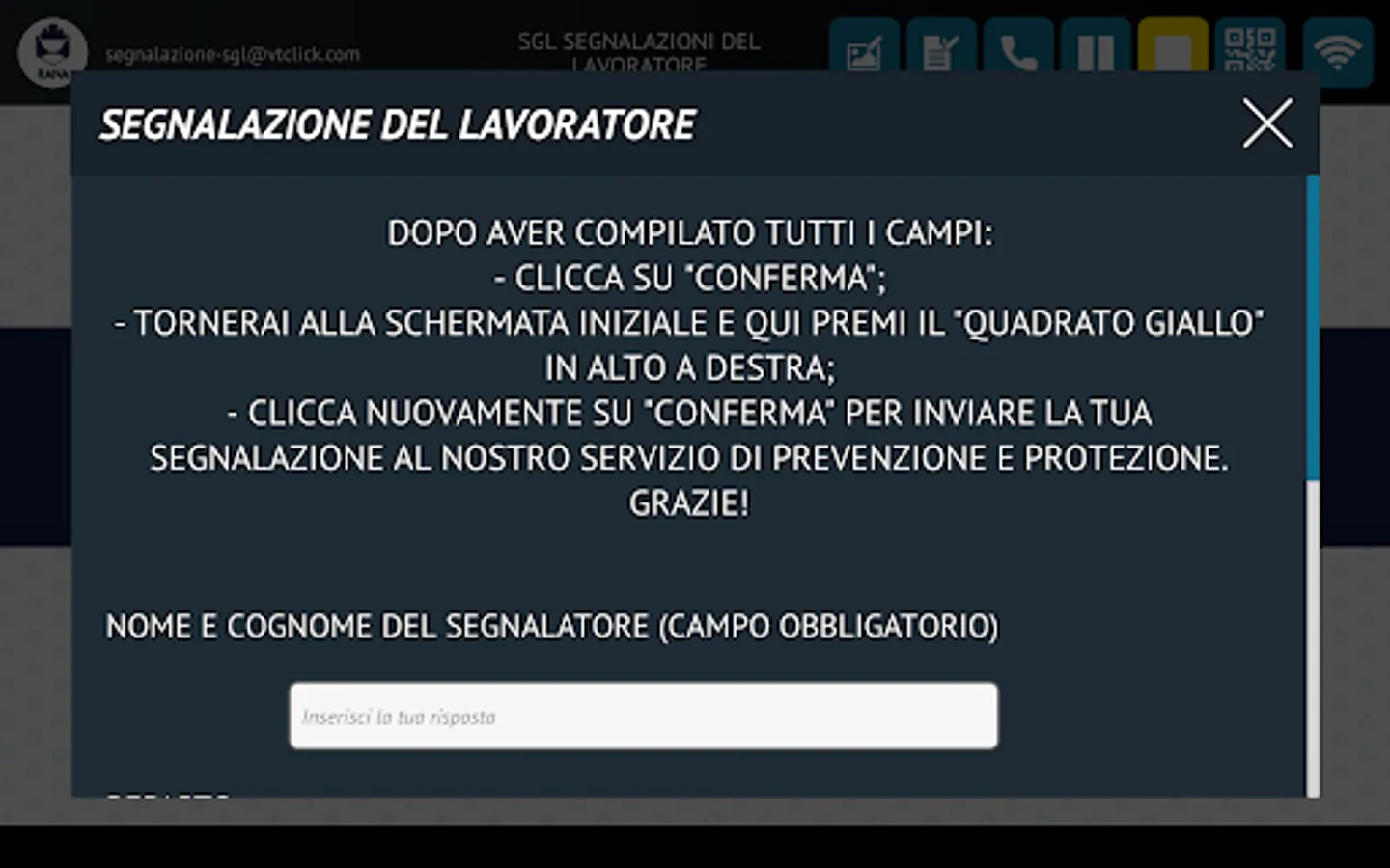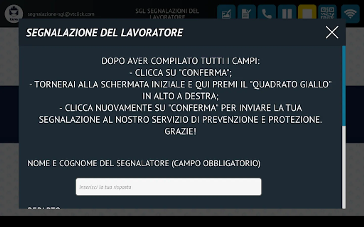 SicuRana is an app aimed at employees of the Rana Group and allows you to make reports relating to the safety of your workstation and all the work environments of the Rana Pastificio.