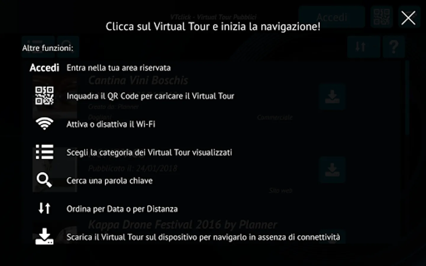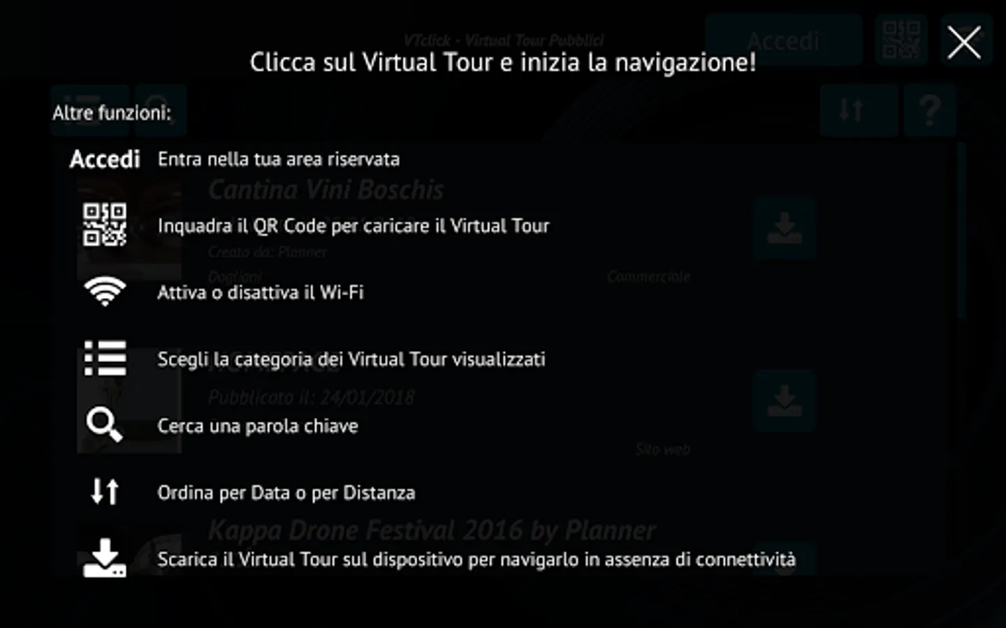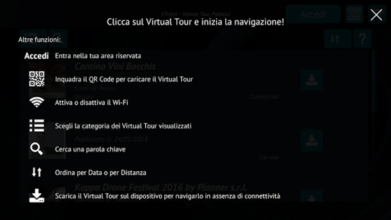 VTclick®è the APP with which you can navigate the Virtual Public and Private Tour of vtclick.com built and operated without the use of a browser.