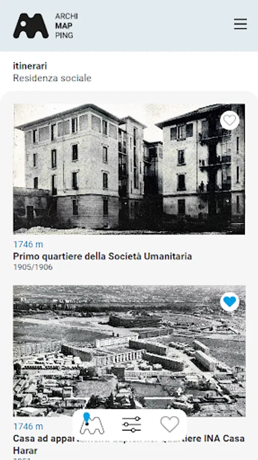 The application allows the geolocation of "must-see" examples to learn about the history of modern architecture in Milan.