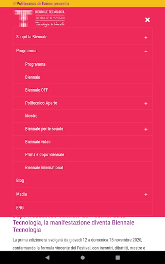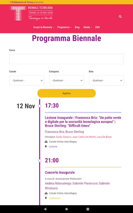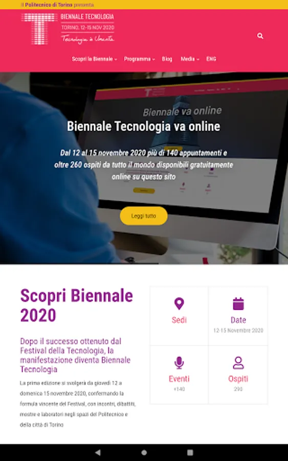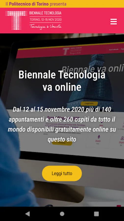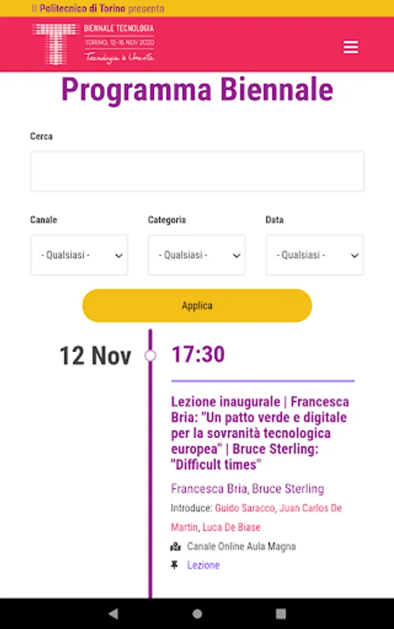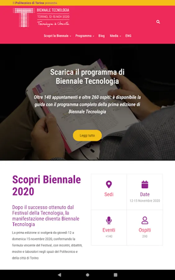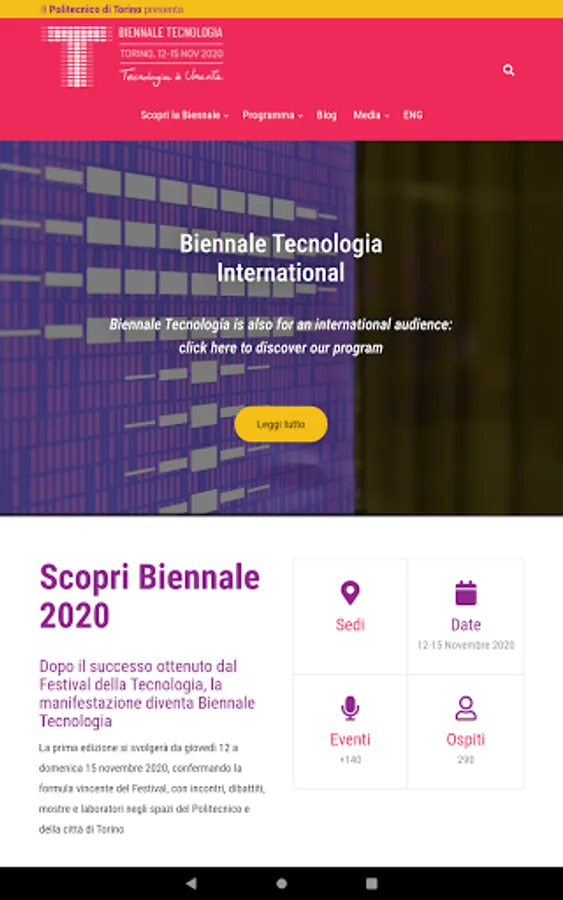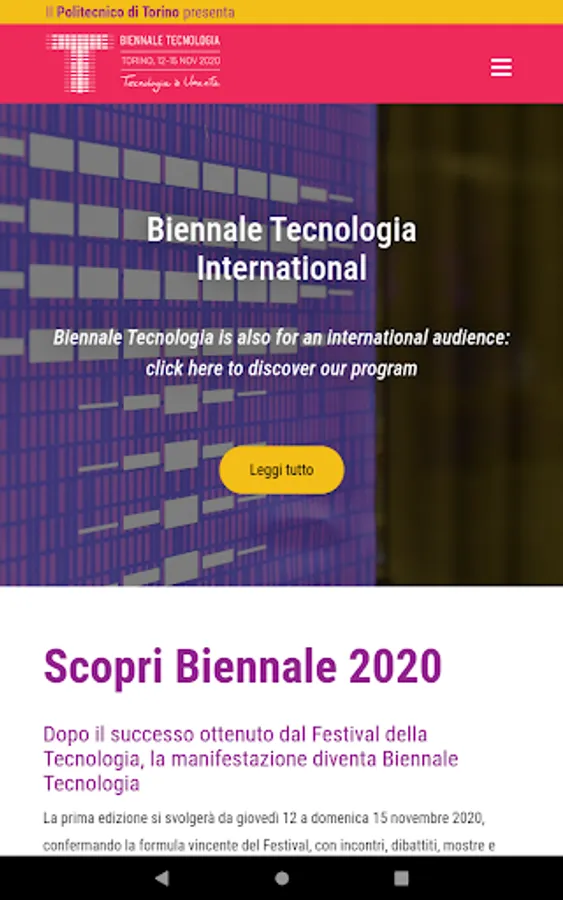 The app allows you to have all the information on Biennale Tecnologia at your touch: