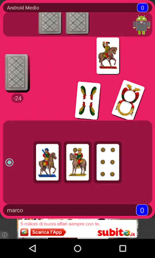 (-) automatic captures: a combination of cards whose sum is 15 (N.B. captured cards cannot be choosen)