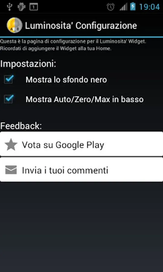 Brightness Widget is a 1-click Widget to switch between three screen backlight brightness: