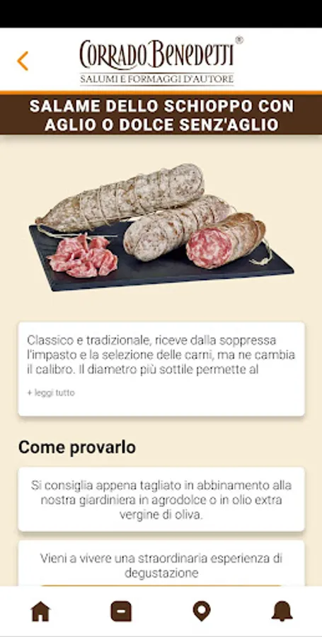 Today Corrado Benedetti carries on the family tradition producing salami, refining and maturing cheeses, according to a philosophy capable of maintaining traditional recipes and processing techniques in the production of specialties. Creating a gastronomic specialty means perfecting it continuously, to reach the best and satisfy the palates. Innovating is in the spirit of the Benedetti family, as well as being linked to the places and times that the mountains and seasons require.