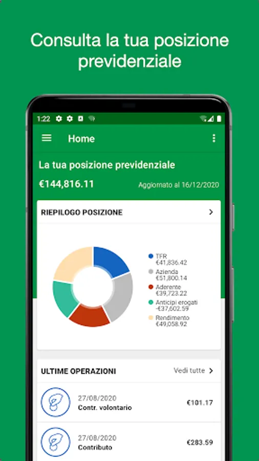 The app allows you to access the reserved area to consult your contribution position.