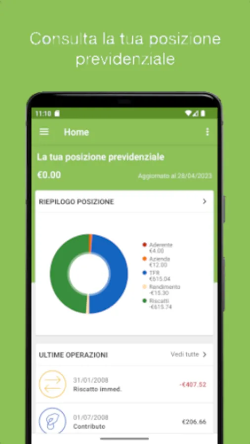 The app allows access to the reserved area to consult your contribution position.